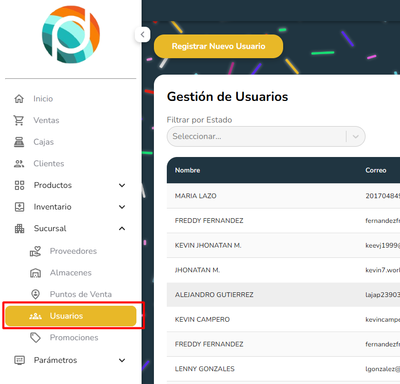- Se accede a la ventana de Usuarios