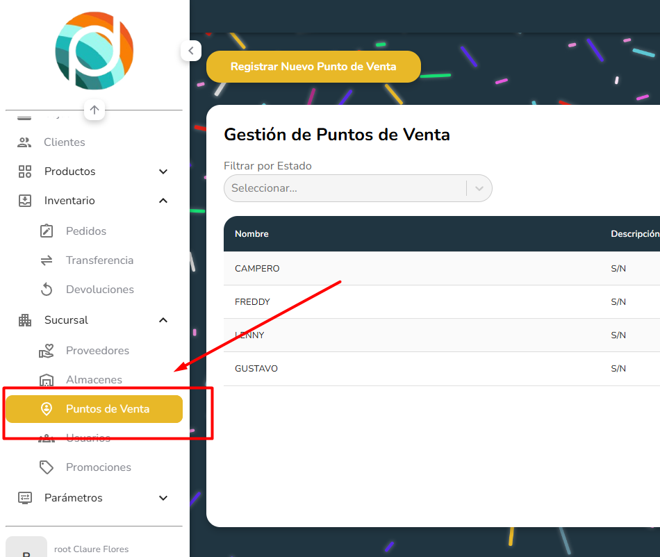 - Se accede a la ventana de Puntos de ventas