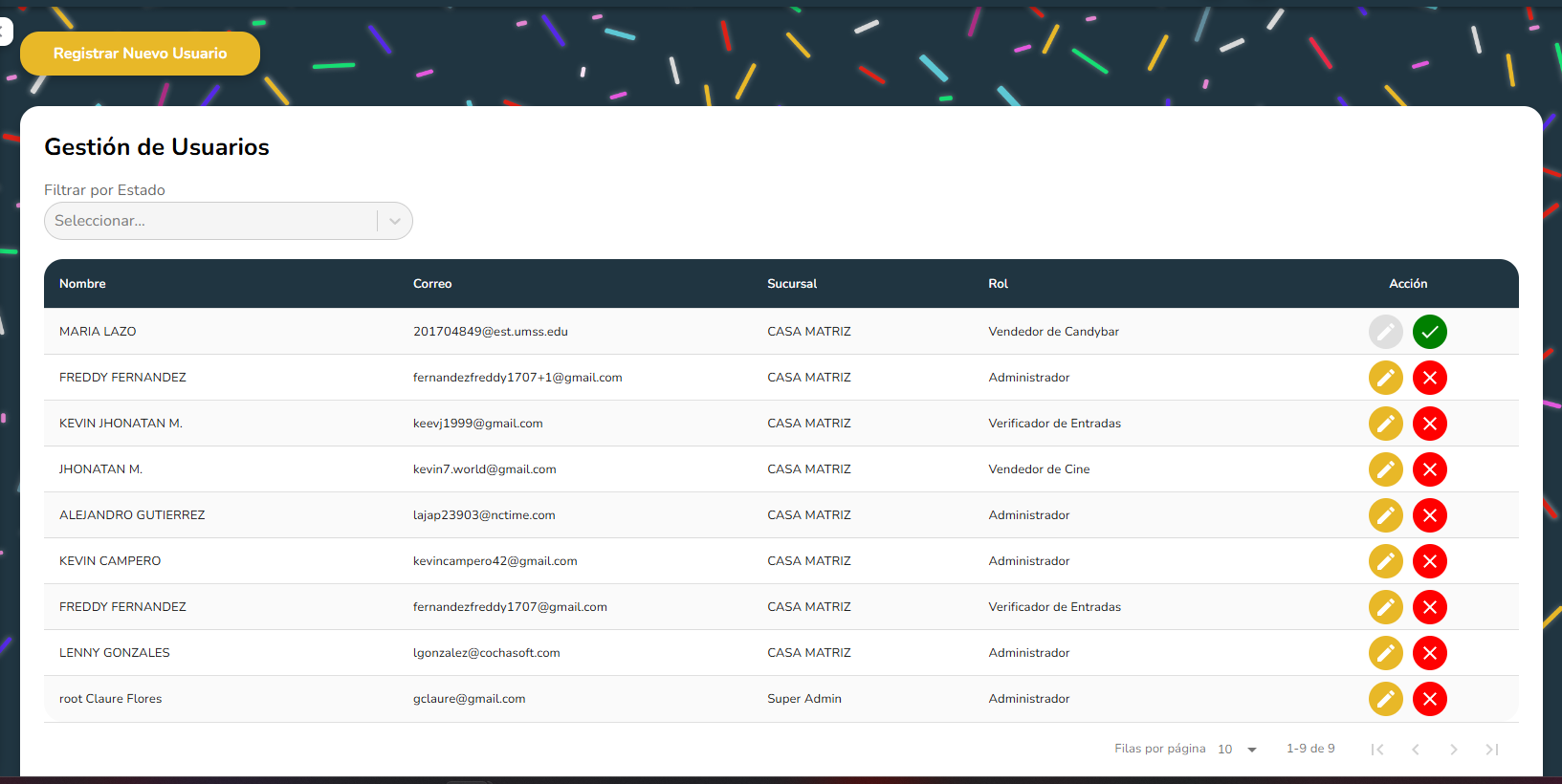 - Filtrador por Estado: Nos permite visualizar unicamente los usuarios habilitados o inhabilitados.