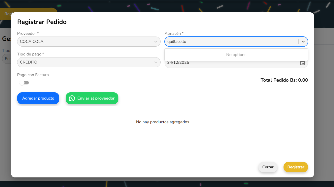 Cuando un almacen esta inhabilitado no estara visible para registrar un pedido con dicho almacen