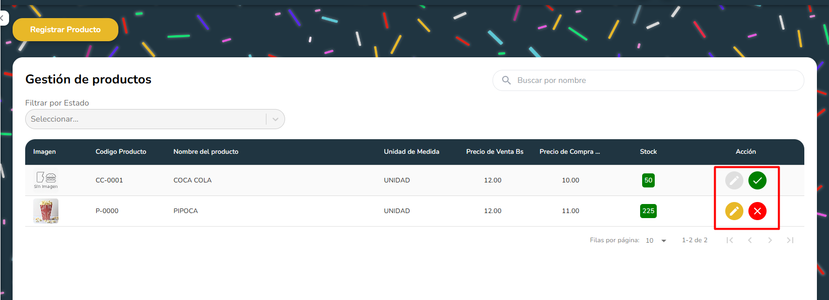 - En las ventas, los productos inhabilitados no se veran para realizar una venta