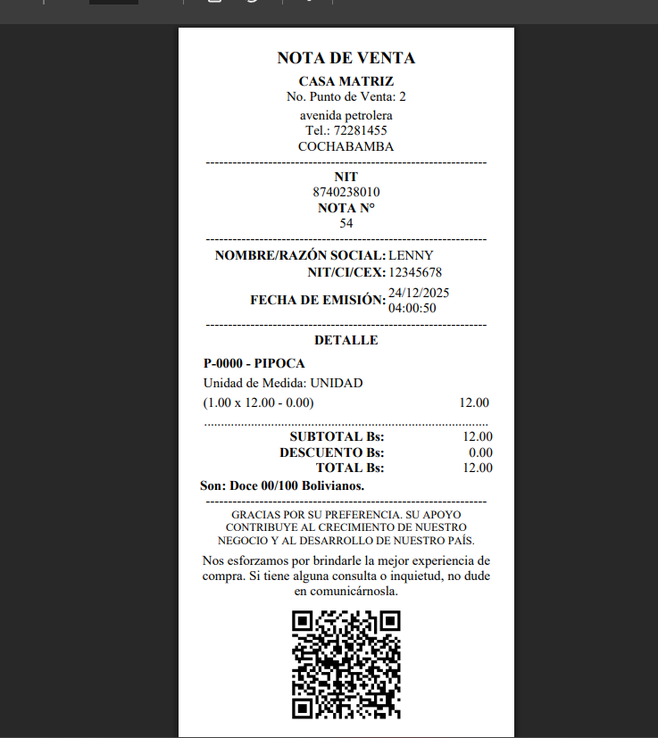 - Ver Nota de Venta: Boton icono que muestra todos los detalles de la venta en el formato seleccionado en la configuracion
