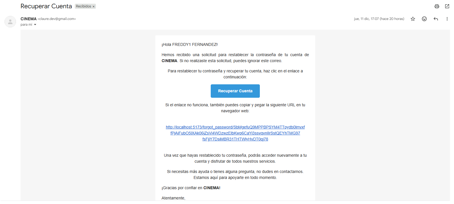 - Dentro del mensaje, haz clic en el botón“Recuperar cuenta” o en el enlace proporcionado.