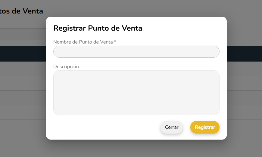 El registro de un Punto de Venta permite crear una nueva terminal desde la cual se realizarán operaciones de venta dentro del sistema.