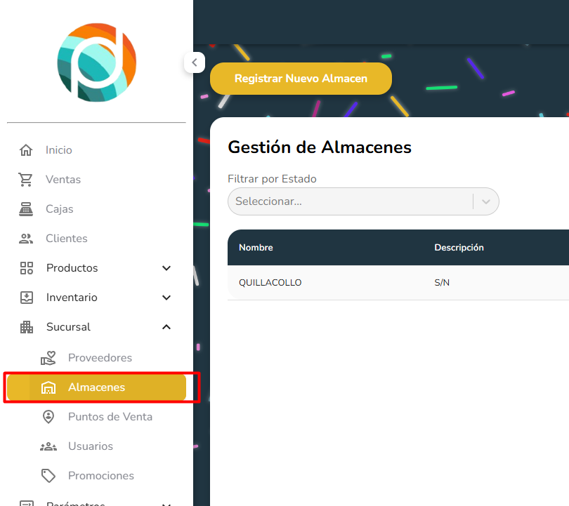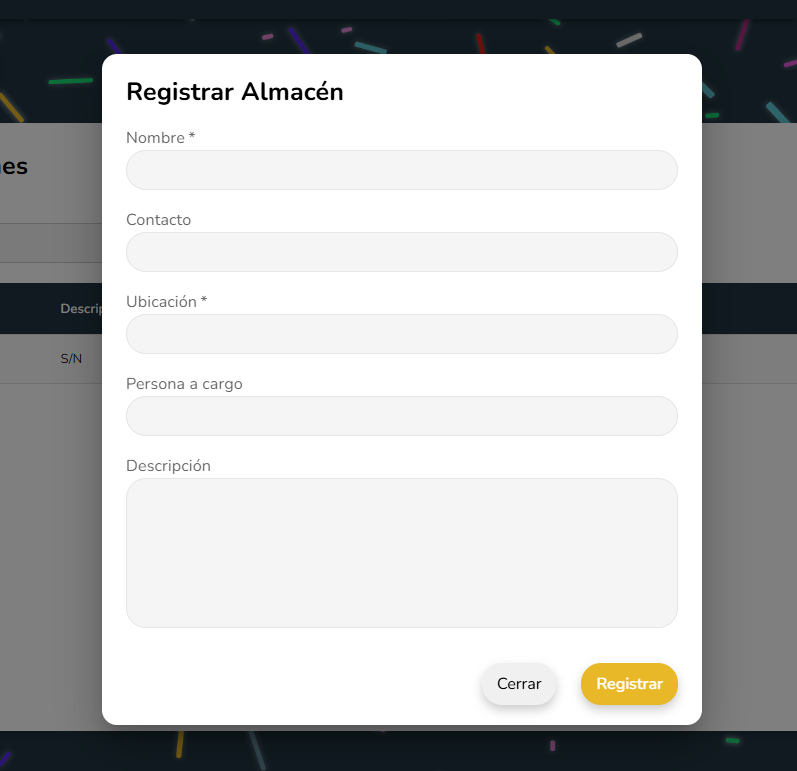 El registro de almacen permite ingresar los datos necesarios para tener almacenes donde guardar nuestros productos