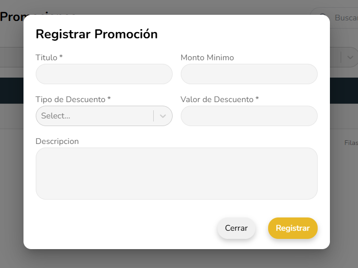 El registro de promocion permite ingresar los datos necesarios para tener promociones para tus ventas