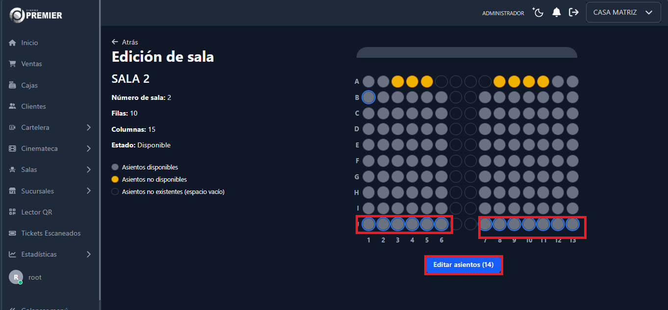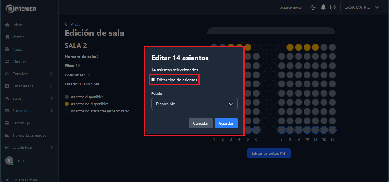 Se tendran que escoger los asientos para editarlos y se escogera la opcion de editar tipos de asiento.