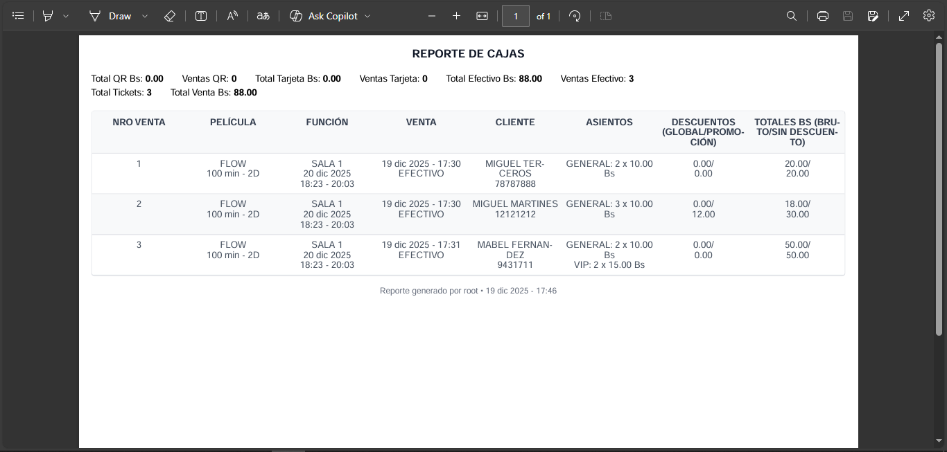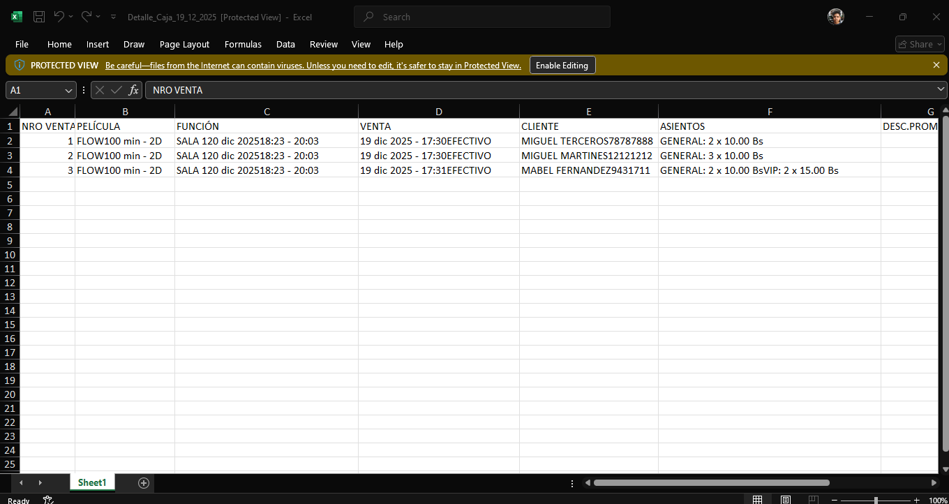 En los detalles de la caja se puede ver la informacion de las ventas realizadas en la caja ademas de opciones para descargar un excel o pdf de las ventas.