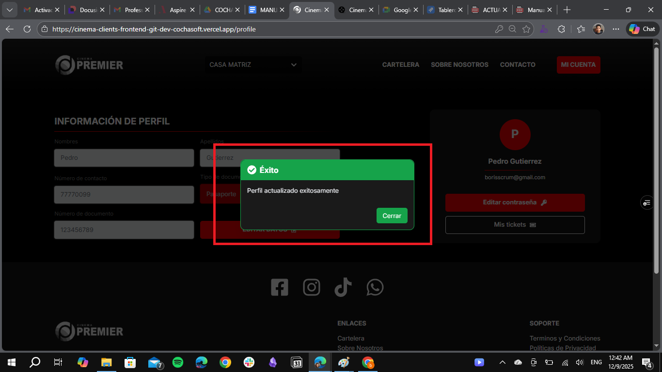 El sistema mostrará un mensaje confirmando que el perfil ha sido actualizado correctamente.