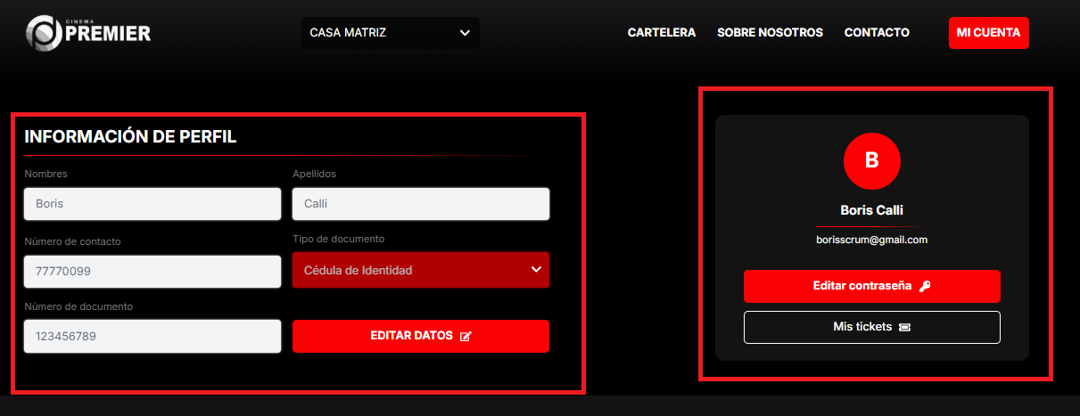 De esta forma, el usuario puede gestionar tanto su información personal como las opciones relacionadas con seguridad y control de sus tickets desde un mismo lugar.