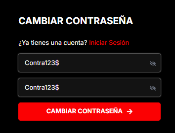 En el sitio de recuperación verá un formulario donde deberá ingresar su nueva contraseña y confirmarla nuevamente.