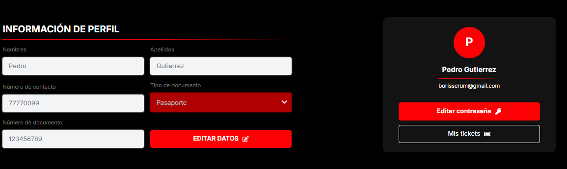 Una vez ingresados los datos, haga clic en el botón “Cambiar Contraseña”. El sistema mostrará un mensaje confirmando que el cambio fue exitoso y lo redirigirá automáticamente a la sección de Perfil, donde podrá continuar utilizando su cuenta con normalidad.