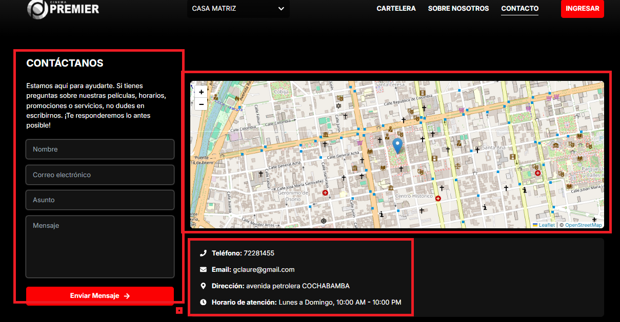 Para enviar un mensaje al cine mediante el formulario de contacto: