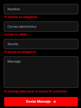 Campos obligatorios: todos los campos deben completarse. No es posible dejar ninguno en blanco.