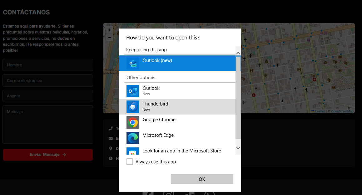 Apertura del correo: al hacerlo, se abrirá automáticamente tu cliente de correo electrónico para realizar el envío.