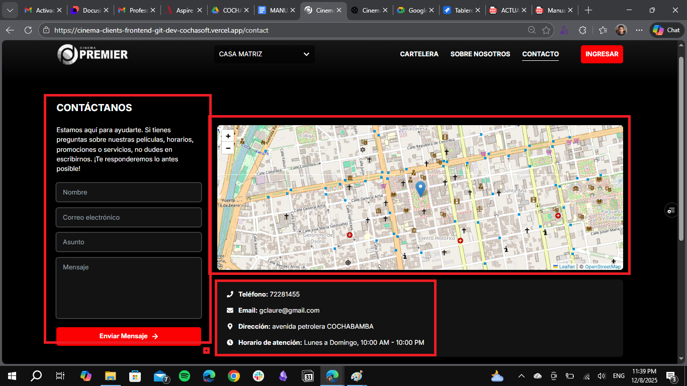 Para enviar un mensaje al cine mediante el formulario de contacto: